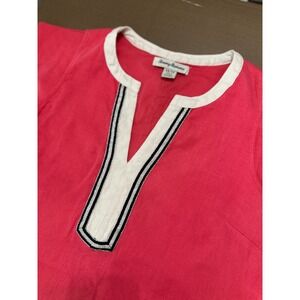 Keywords: Tommy Bahama, linen dress, pink dress, sleeveless dress, shift dress, casual dress, summer dress, beach dress, vacation dress, XS dress, womens dress, V-neck dress, resort wear, cruise wear