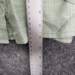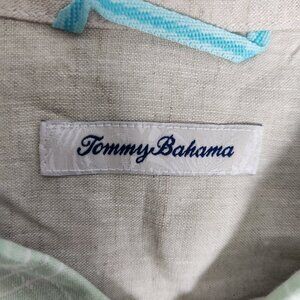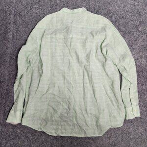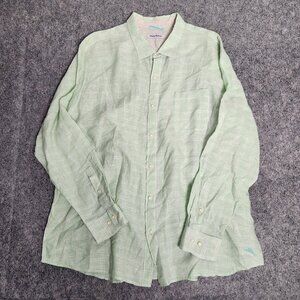 Tommy Bahama Linen Hawaiian Shirt Men 3XL Green Check Plaid Long Sleeve Vacation