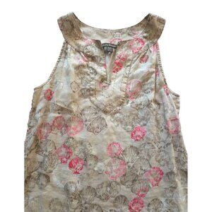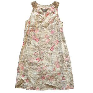 Tommy Bahama Linen Shift Dress Size M Shell Print Sleeveless Tan Pink Palm Beach
