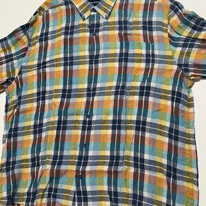 Tommy Bahama Linen Shirt Long Sleeve Button Down Blue Colorful Men's size XXL
