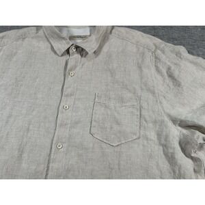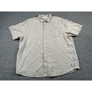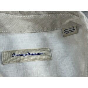 Tommy Bahama Linen Shirt Mens XXL Beige Short Sleeve Chest Pocket Marlin Logo