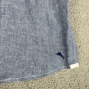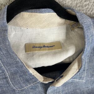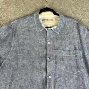 Tommy Bahama Linen Shirt Mens XXL Blue Chambray Short Sleeve Button Up Pocket
