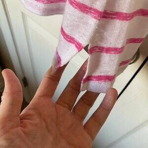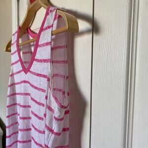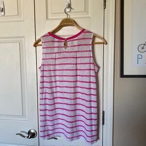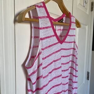 Tommy Bahama Linen V-Neck Sleeveless Burnout Top Pink White Stripe Women's XS/TP