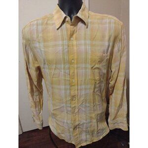 Tommy Bahama Long Sleeve Button Shirt Medium M Yellow Plaid Tencel Lyocell