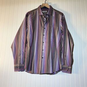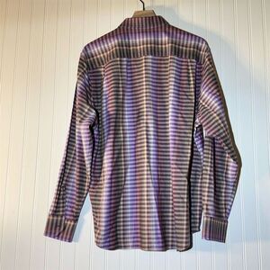 Tommy Bahama Long Sleeve Button-Up Shirt Size XL Purple Plaid Cotton Silk Blend