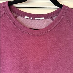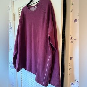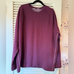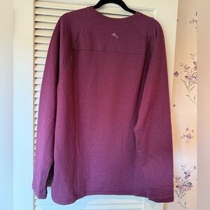 Tommy Bahama long sleeve reversible crewneck. Plum color on one side and a thin plum stripe on the other. Contrast stitching. This is a warm top. Super soft. Only worn once due to weight loss.