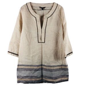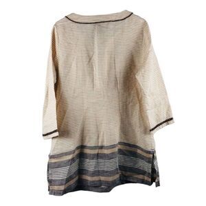 Color: Beige & white stripe 100% linen with beading around the split neck and 3/4 sleeves