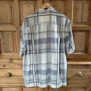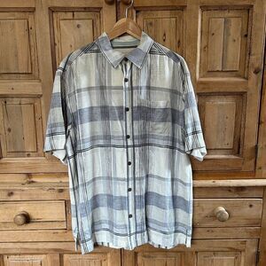 Tommy Bahama Medium Silk Button Front Shirt Short Sleeve White Gray Plaid