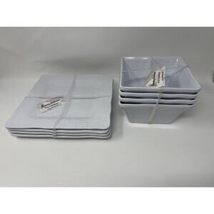 Tommy Bahama Melamine 8 pc Beaded Dinner Plates and Bowls White NEW