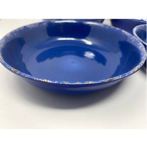 Tommy Bahama Melamine 9" Dinner Bowls Salad Pasta Blue Navy Rustic Crackle NEW