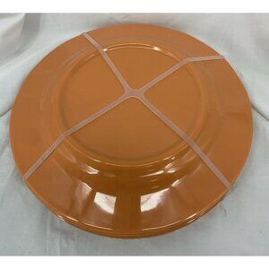A Tommy Bahama dinner plate set in orange/coral with a cackle pattern. The plate is new with tags, and comes with a set of 4 dinner plates.