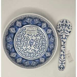 Tommy Bahama Melamine Seashell Serving Bowl and Utensils