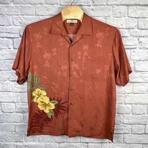 Tommy Bahama Men 100% Silk Jacquard Tree Floral Aloha Hawaiian Shirt Size Large