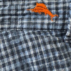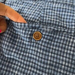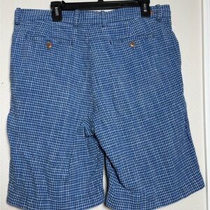 Tommy Bahama Men Gingham Check Blue Flat Front Casual Shorts. Linen/Silk Blend.