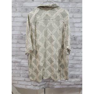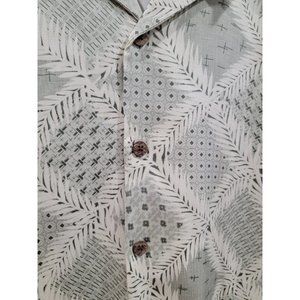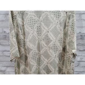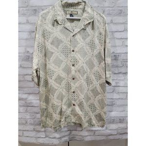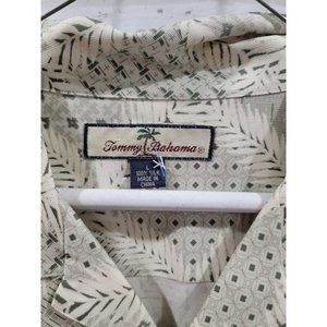 Tommy Bahama Men Large 100% Silk Ivory Geometric Palm Trees Shirt Button Down