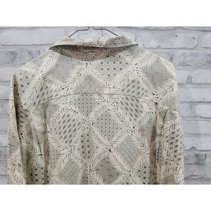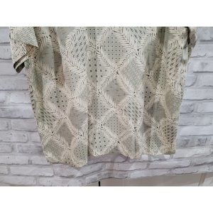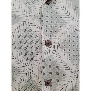 Tommy Bahama Men Large 100% Silk Ivory Geometric Palm Trees Shirt Button DownMeasures 31.5" Length x 25" Chest x 22" Sleeve hem to collar