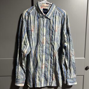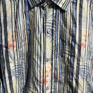 Tommy Bahama Men Long Sleeve Button Front Floral Stripe Shirt Multicolor 2XL
