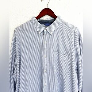 Tommy Bahama Men XXL Blue Striped Cotton Long Sleeve Button Down Casual Shirt