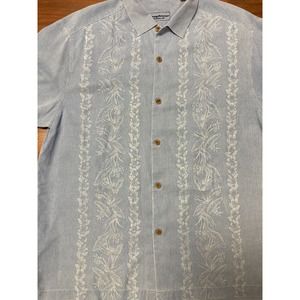 Tommy Bahama Men size XL Blue Silk Patterned Original Fit Shirt Short Sleeve