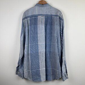 Tommy Bahama Men’s 100% Linen Long Sleeve Blue Chambray Plaid Button Down - XXL