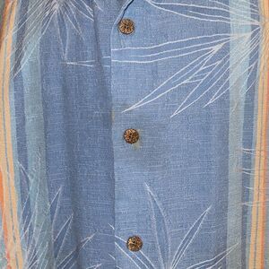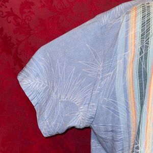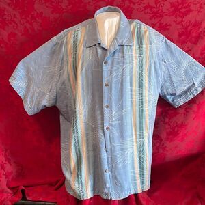 Gently loved Tommy Bahama shirt. Blue with palm leaves and orange and green stripes. Excellent condition