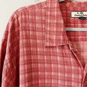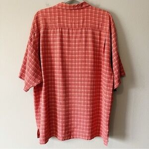 Tommy Bahama Men’s 100% Silk Coral Plaid Short Sleeve Button Front Shirt XL