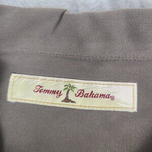 Elevate your casual style with this Tommy Bahama button-front shirt for men. Crafted from luxurious 100% silk material, this shirt features a solid pattern in a sophisticated brown color. Designed with a button-down collar and long sleeves, this shirt is perfect for all seasons and occasions.