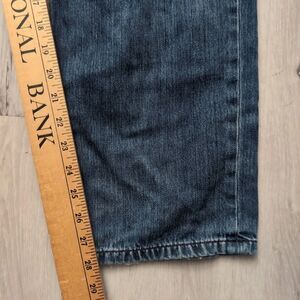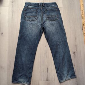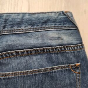Pre-owned same day or next business day handling. Has tears/distress throughout jeans mainly concentrated near pockets and bottom leg opening.