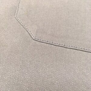 Tommy Bahama mens 3XB light gray button front shirt in excellent condition. See photo details for the small pattern woven into the surface of the cloth. 85% silk plus 15% wool. Dry clean.