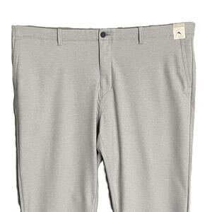 This listing is for a new with tags Tommy Bahama Men's 44x34 "On Par Flat Front" Pants in Harbor Mist (Light Gray). Flat Front, Moisture Wicking, UPF 30, Stretch Fabric, Stretch Waistband, Two Side Patch Pockets, 1 Side Zipper Pocket, Two Back Sipper Pockets, Belt Loops, Button/Zip Closure. 64% Polyester, 36% Recycled Polyester, Machine Washable.