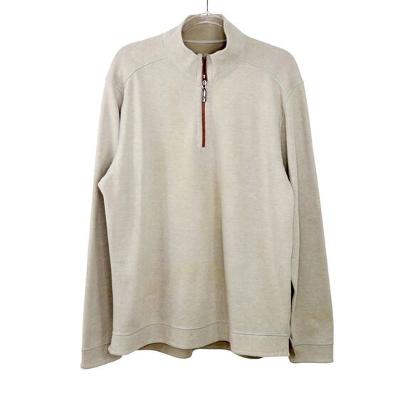 Tommy Bahama Men's Beige Tan Quarter Zip Sweater Size Large Preppy