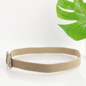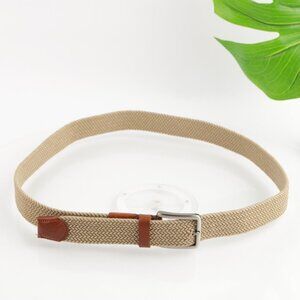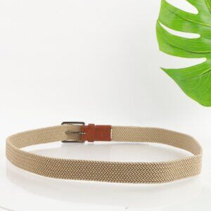 Tommy Bahama Mens Belt Size L / XL Large Khaki Elastic Webbed Brown Leather Tip