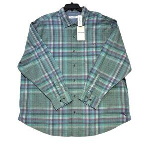 Tommy Bahama Men's Big and Tall XLT Coastline Cord Verde Plaid Trout Green Shirt