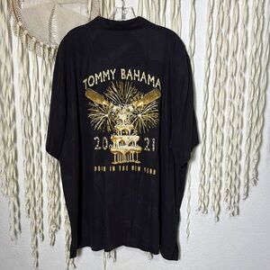 Tommy Bahama Men's Black "2021" Embroidered Short Sleeve Button Down Size XL