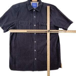 Tommy Bahama Mens Black Button Up Short Sleeve Shirt Cotton Pockets Large