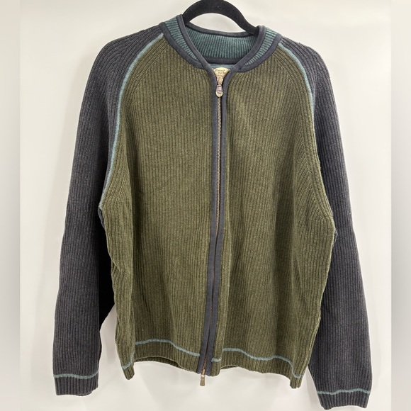 Tommy Bahama Men’s Black Cotton Green Full Zip Sweater Jacket Black Size Xl