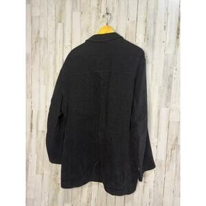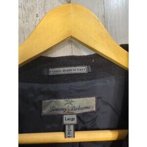 Brand, Tommy Bahama, Jacket, Overcoat, Men's fashion, Black jacket, Casual wear, Fall fashion, Italian made, Mid-length coat, Classic collar, Button closure, Pre-owned, Large size, Regular fit, Solid pattern, Cotton blend, Viscose, Wool, Rayon lining, Two front pockets.