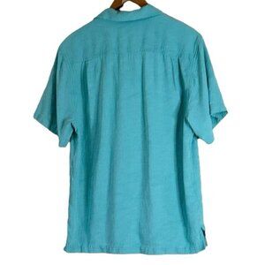 Tommy Bahama Mens Blue 100% Silk Aqua Blue Original Fit Palm Tree Fish Shirt Med