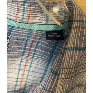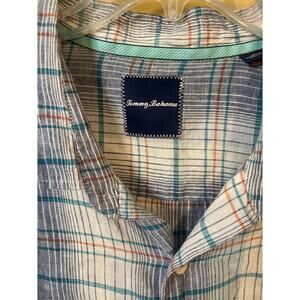 Tommy Bahama Men's Blue Plaid 100% Linen Button-up Shirt Size 2XB