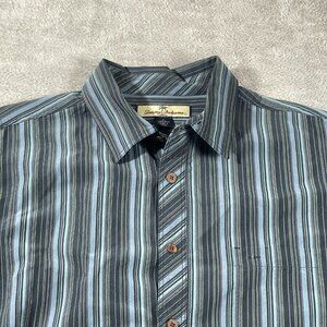 Tommy Bahama Mens Blue Stripe 100% Silk Long Sleeve Dress Shirt L Outdoorsy