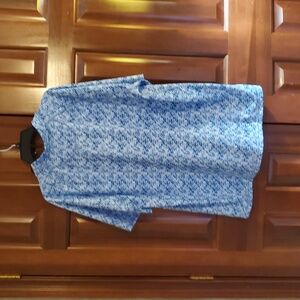 Stylish button-down with a vibrant blue and white pattern. Ideal for casual wear.