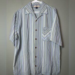 Tommy Bahama Men's Blue/Green Striped Shirt 100% Silk Size Small