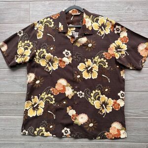 Tommy Bahama Mens Brown Floral Silk Short Sleeve Hawaiian Button-Down Shirt XL