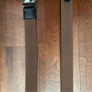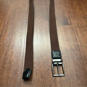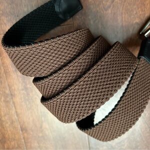 Tommy Bahama Men’s Brown Webbed Belt with Black Leather Trim, Size Large/XL