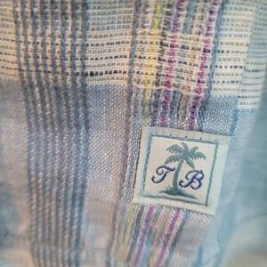 Tommy Bahama Button-Up Shirt Women's Size XL Multicolor Blue Plaid Linen Short Sleeve.