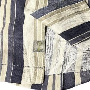 Tommy Bahama Men’s Button-Up Shirt Vertical Silk Striped Beige Tan Blue Sz Large