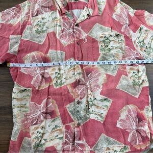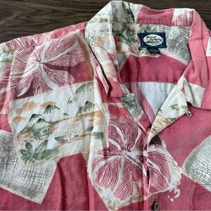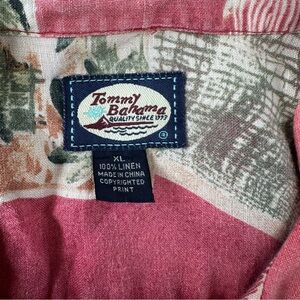 Tommy Bahama Mens Camp Shirt XL Red 100% Linen Hawaiian Floral Island Beach Top