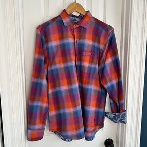 Tommy Bahama Men's Canyon Beach Fireside Check Stretch Flannel Shirt EUC