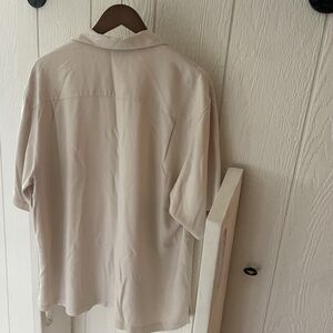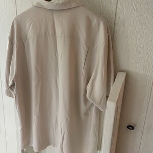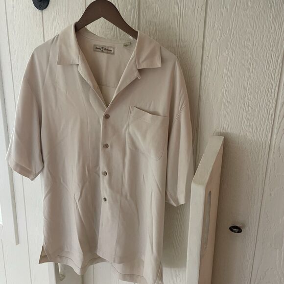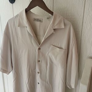 Tommy Bahama Men’s Cream 100% Silk Short Sleeve Button Down Shirt