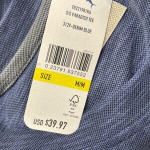 Crafted with a soft cotton blend, this Tommy Bahama short sleeve tee in denim blue offers comfort and sophistication. It features a subtle embroidered marlin logo on the chest and a classic crew neckline. Designed for relaxed wear, it’s lightweight and stylish, with a clean, polished appearance. Made in China and brand new with tags.